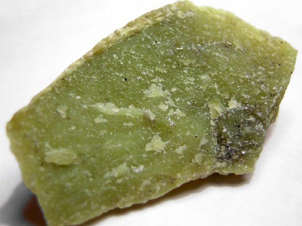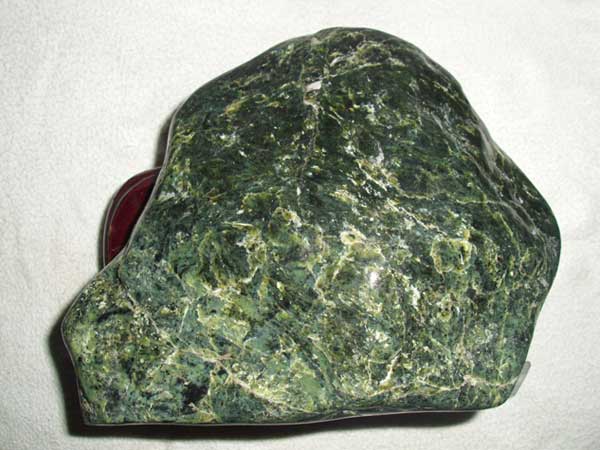 蛇紋石質玉石質地呈細膩的致密塊體,質地細膩,用手觸摸有滑感。它由細小纖維狀、葉片狀和膠狀蛇紋石晶體組成,呈網(wǎng)斑狀結構。有時在均勻分布的基底上,可見密集堆積的云朵狀白色斑狀。少數(shù)纖維狀塊體琢磨后有貓眼效應。